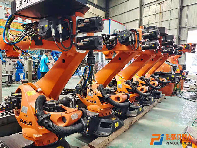 Der Industrieroboter KR 270 R2700 hat ein dynamisches Design, das sich ideal für den Umgang mit schweren Lasten eignet; mit einer Tragfähigkeit von 270 kg und einer Armreihe von 2700 mm.Es zeichnet sich durch die Zugehörigkeit zur Reihe von Robotern Kuka KR360 Fortec durch hohe Wiederholgenauigkeit und maximale Reichweite aus, da es eine kostengünstige Lösung für Schwerlastindustrie ist, hat es verschiedene Varianten für Arbeitsumgebungen, die gegen Hitze, Staub und Wasser beständig sind, Bodenbefestigungsposition, Schutz IP65.
